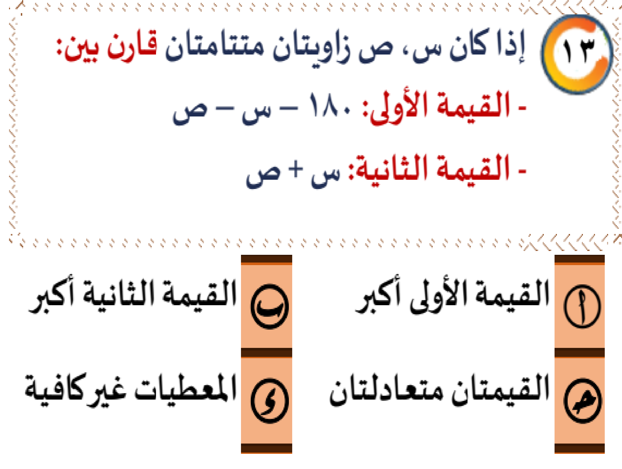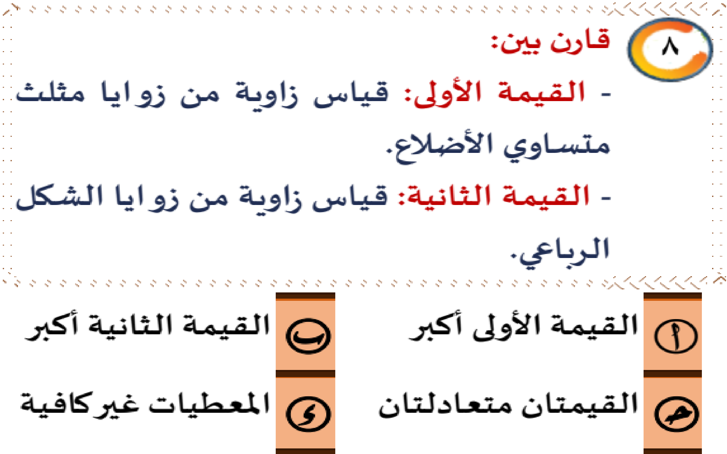 اختبار منتصف الاسبوع الثالث ( تدريب جديد)بواسطة احمد كمال / 10 فبراير، 2025 0% 117 اختبار منتصف الأسبوع الثالث ( تدريب جديد) 1 / 59 بوصلة : اتجاه أ- كتابة : قلم ب- صحيفة : إعلان ج- كعبة : قبلة د- ساعة : وقت 2 / 59 مقود : سيارة أ-دفة : سفينة ب- مكتب : موظف ج- باب : مزلاج 3 / 59 طفل : حليب أ- كوب : شاي ب- عشب : ماء ج- أم : رعاية د- علم : جهل 4 / 59 حجة : برهان أ- جريمة : متهم ب- محقق : قضية ج- دليل : شاهد د- فرح : سرور 5 / 59 الجدي : سنبلة أ- النجم : اللامع ب- الوسمي : المطر ج- الخريف : الاعتدال د- شعبان : شوال 6 / 59 سرور : حبور أ- نشاط : كسل ب- ألم : وجع 7 / 59 التردد ........ الفرص أ- سارق ب- توأم ج- مغتنم د- جالب 8 / 59 ........ العاقل أفضل من ......... الجاهل أ- كذب – صدق ب- ظن – يقين ج- محبة – مودة د- عفو – مجاملة 9 / 59 إذا ........ فاسأل و إذا ........ فاندم أ- هجرت – صاحبت ب- عشقت – هجرت ج- جهلت – أسأت د- سألت – أخذت 10 / 59 القاضي يرجع الحق ل ........ وقد وهبه لله عز وجل ....... لكي يكشف المجرمين ا~ صاحبه- فطنة . ب~ أهله- قوة ﺝ~ الغير- معرفة د~ نوع- أسفار 11 / 59 إن السهر في ............. الاختبارات يكون له ........... على الطالب . ليالي – مخاطر أيام – خطر أوقات – ضعف السهر – أخطار 12 / 59 كل شيء إذا كثر ........... إلا الأدب فإنه إذا كثر ........... سمج - علا ندر - دنا رخص - غلا قل - أبهر 13 / 59 الأم أشد عطفا بولدها والأب أشد حرصا على مصلحته ، ومن نعم الله عليه توقيرهما له أ - الأم ب - أشد ج - مصلحته د - توقيرهما 14 / 59 ليس من يقول الحق و يفعله بأسوأ من الذى يسمعه ثم يقبله . أ-الحق ب- بأسوأ ج يفعله د- يقبله 15 / 59 الاستثمار يقدم عوائد جيدة في الماضي بمساعدة الموارد المتاحة في الحاضر . الحاضر الماضي مستقبلًا النجاح 16 / 59 الشكوى هي التعبير الخفي عن عدم الرضا بالواقع أو القناعة به . أ-الشكوى ب- الخفي ج الرضا د- القناعة 17 / 59 الحياة طويلة و لكن المصائب جعلتها أطول مما نظن أ-طويلة ب- الحياة 18 / 59 الانسان المنظم هو الذي يفعل ما يشاء وقتما يشاء. أ- المنظم ب- يفعل ج- ما يشاء د- وقتما 19 / 59 علمتني الحياة أن أكون مفضالاً وان اترقب المقابل حتى لا اصدم بالجحود. أ. مفضالاً ب. اترقب ج. اصدم د. بالجحود قطعة البصمة البنان هو نهاية الأصبع، وقد قال الله تعالى: (أيحسب الإنسان ألن نجمع عظامه. بلى قادرين على أن نسوي بنانه).... (سورة القيامة) وقد توصل العلم إلى سر البصمة في النصف الثاني من القرن التاسع عشر، حيث تتكون من خطوط بارزة في بشرة الجلد تجاورها منخفضات وتعلو الخطوط البارزة فتحات المسام العرقية تتمادى هذه الخطوط وتتلوى وتتفرغ عنها فروع لتأخذ في النهاية وفي كل شخص شكلاً مميزاً وقد ثبت أنه لا يمكن للبصمة أن تتطابق وتتماثل في شخصين في العالم، حتى في التوائم المتماثلة التي أصلها من بويضة واحدة. ويتم تكوين البنان في الجنين في الشهر الرابع وتظل البصمة ثابتة ومميزة له طيلة حياته ويمكن أن تتقارب بصمتان في الشكل تقارباً ملحوظاً، ولكنهما لا تتطابقان أبدا ولذلك فإن البصمة قد تعد دليلاً قاطعاً ومميزاً لشخصية الإنسان، ومعمولاً به في كل بلاد العالم ويعتمد عليها في علوم الأدلة الجنائية وخاصة في القضايا التحقيقية الجنائية لكشف المجرمين واللصوص والتشخيص. وقد يكون هذا السر الذى خصصه الله تبارك وتعالى من أجله البنان، وفي ذلك يقول العلماء: لقد ذكر الله البنان ليلفتنا إلى عظيم قدرته. بصمة الرائحة وقد استغلت هذه الصفة المميزة، أو البصمة في تتبع آثار أي شخص معين، وذلك باستغلال بعض أنواع الكلاب التي تستطيع بعد شم ملابس إنسان معين أن تخرجه من بين ألاف البشر. بصمة الشفاه: كما أودع الله بالشفاه سر الجمال أودع فيها كذلك بصمة صاحبها ونقص بالبصمة هنا تلك العضلات القرمزية التي كثيراً ما تغنى بها الشعراء وقد ثبت أن بصمة الشفاه صفة مميزة، لدرجة أنه لا يتفق فيها اثنين في العالم، وتؤخذ بصمة الشفاه بواسطة جهاز به حبر غير مرئي حيث يضغط بالجهاز على شفاه الشخص بعد أن يوضع عليها ورقة من النوع الحساس، فتطبع عليها بصمه الشفاه، وقد بلغت الدقة في هذا الخصوص إلى إمكانية أخذ بصمة الشفاه حتى 