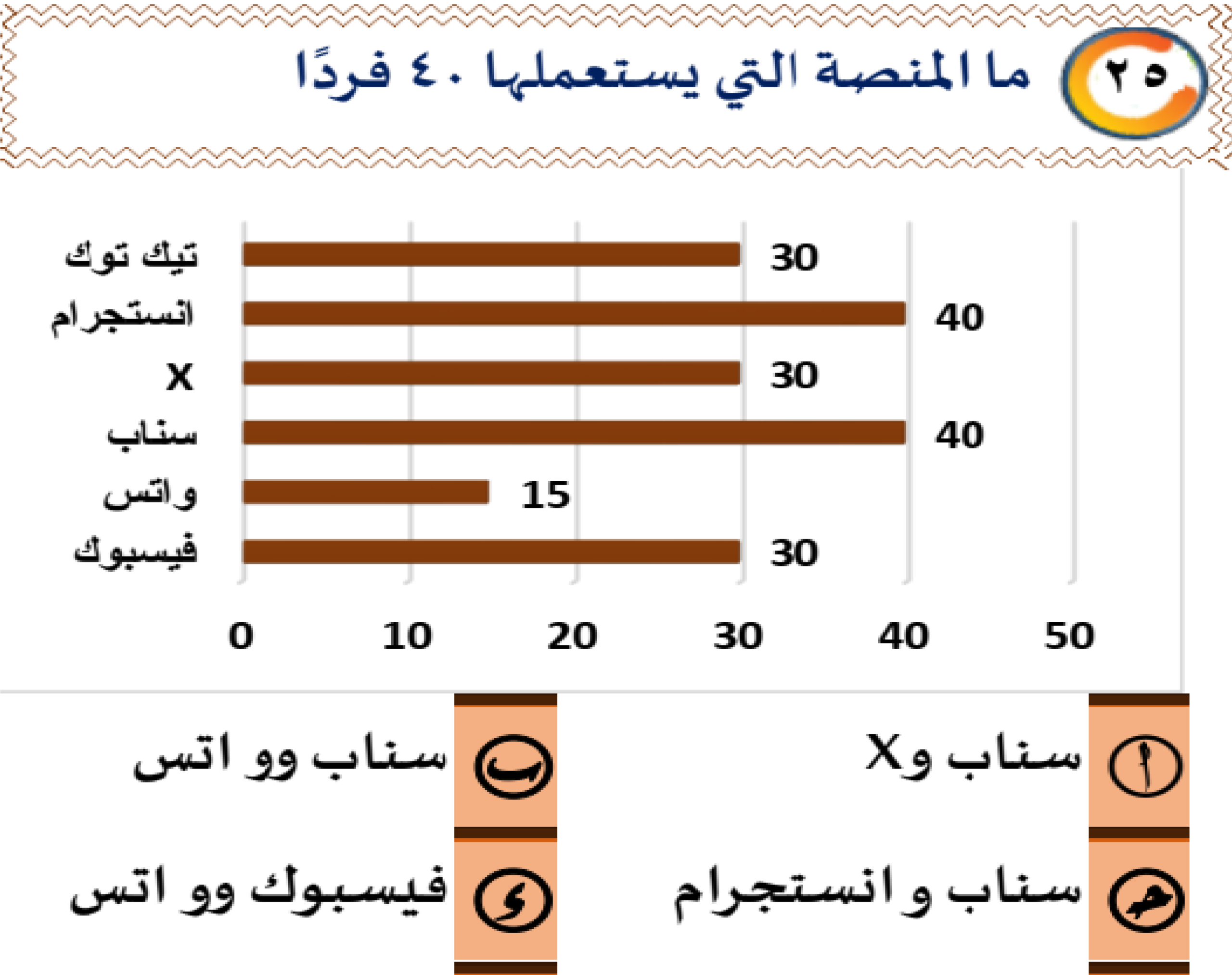 اختبار نهاية الاسبوع الثالث ( تدريب جديد )بواسطة احمد كمال / 12 فبراير، 2025 0% 110 اختبار نهاية الأسبوع الثالث ( تدريب جديد) 1 / 60 سيارة: موقف أ) قطار: سكة ب) سفن: مرسى ج) طائرة: مدرج د) سفر: طائرة 2 / 60 فانوس : زيت صحبة : أخوة نكاح : عقد قلم : ورقة سحور : صيام 3 / 60 تجربة : معمل ليل : نهار مساء : ظهر سيارة : معرض مباراة : ملعب 4 / 60 قراءة: ثقافة أ) تفسير: قرآن ب) صلاة: صيام ج) مشي: لياقة د) قرآن: تجويد 5 / 60 إقرار : اعتراف أ ـ مدح : ثناء ب ـإطناب : ايجار ج ـ كرة : هجاء د ـ وحدة : تضاد 6 / 60 نوم : ليل أ-شمس : قمر ب- فجر : ظهر جــ- صوم : رمضان د- استيقاظ : عمل 7 / 60 قال حكيم : أولادنا ثمار قلوبنا و عماد ظهورنا فإن طلبوا ...... و إن غضبوا ....... أ- منعناهم – ضربناهم ب- طلبناهم – أغضبناهم ج- أعطيناهم – أرضيناهم د- ملكناهم – أسعدناهم 8 / 60 (19) أن تكون ....... بين الشجعان خير من أن تكون ....... للجبناء (أ) وحيدا – كثيرا (ب) عزيزا – مساعدا (ج) معروفا - محبا (د) فردا - قائدا 9 / 60 (31) تذكر أن ....... لأشيائك القيمة يعرضها ........ (أ) حرصك – للتلف (ب) إهمالك – للضياع (ج) حبك – للفقد (د) نكرانك - للحفظ 10 / 60 قال الشافعي : ليس العلم ما .......... و إنما العلم ما .......... أ- عمل – علم ب- حفظ – نفع ج- نفع – شفع د- فهم – قرئ 11 / 60 يعتبر كتاب كليلة ودمنة من ......... التي تحتوي على مجموعة رائعة من ......... الهادفة. (أ) الآداب : الأخلاق (ب) الأساطير : الحكم (ج) النماذج : الأفكار (د) القصص : التسلية 12 / 60 من تكلم عن نفسه بما ....... تكلم عنه الناس بما ....... (أ) يعجبه : يسعده (ب) يكره : يخشى (ج) يحب : يكره (د) يفرح : يعلمون 13 / 60 الخيل عندما يتجاوز نهاية المضمار، فإنه يبذل قصاري جهده لكي يفوز. أ- الخيل ب- يتجاوز ج- المضمار د- يفوز 14 / 60 عندما نعيش لغيرنا فحسب تبدو لنا الحياة قصيرة ضئيلة أ- قصيرة ب- الحياة ج- لغيرنا د- نعيش 15 / 60 قمة العظمة أن تبكي وفي عينك ألف دمعة وقمة الصبر أن تسكت وفي قلبك جرح يتكلم و قمة الألم أن يجرحك من تحب وقمة الحب أن تحب من جرحك (أ) العظمة (ب) تبكي (ج) تسكت (د) جرحك 16 / 60 إن الاهتمام بالقديم يمنع الشخص من التجديد مختارا كان أو راضيا (أ) الاهتمام (ب) القديم (ج) التجديد (د) مختارا 17 / 60 حين تسيء إلى من أساء إليك و تقدم المعروف إلى من منعك سيعرف الناس كرم أخلاقك أ- تسيء ب- تقدم ج- كرم د- منعك 18 / 60 الصديق الحقيقي من يقوم باستحضار هفواتك ويقف جانبك في مواجهة صعوبات الحياة (أ) الصديق (ب) الحقيقي (ج) باستحضار (د) جانبك قطعة التغافل يعد التغافل من الشيم الحميدة التي تسهم في الحفاظ على العلاقات القوية مع الأحباب ، إنه القدرة على تجاوز الأخطاء و السلبيات في سلوك الآخرين و التركيز على الجوانب الإيجابية في شخصياتهم ، فالتغافل يدل على سمو النفس و القدرة على التسامح و المرونة في التعامل مع الآخرين و يساهم التغافل في بناء جسور الثقة و المحبة و يمنحنا القدرة على التحكم في ردود أفعالنا و الحفاظ على أواصر المحبة و المودة بيننا و بين الأشخاص الذين نهتم بهم 19 / 60 الإنسان المتغافل يتميز ببعض الصفات أهمها أ- الحقد ب- الانتقام ج- سمو النفس د- الانزعاج 20 / 60 معنى ( الشيم ) من النص أ- الصفات ب- المواعظ ج- الحكم د- النصائح 21 / 60 النص يؤكد على أ- التفاؤل ب- النسيان ج- اليأس د- التغافل 22 / 60 قطعة الحجامة ينصح العلماء ألا تتم الحجامة في بداية الشهر العربي، أو نهايته، وإنما في منتصف الشهر، حيث أنه لا يكون هائجاً في بداية الشهر، ويكون ساكناً في نهايته. وأن تتم في فترة الصباح أو الظهر وليس في الليل، وأفضل الأوقات في الساعة الثانية والثالثة بعد الظهر، وأن تكون في الصيف لا في الشتاء، أو تدفئة الغرفة التي ستتم فيها الحجامة جيّداً. الحجامة الجافة تستخدم كاسات الهواء، وتقوم بتوزيع الدم الفاسد من مواضع الألم، وبالتالي تخفّف الآلام والحجامة الرطبة تشبه إلى حد كبير الحجامة الجافة، حيث يتم استخدام الكؤوس المفرغة من الهواء أيضاً ، ولكن يتم عمل تشريط ، أي جروح خفيفة في الجلد ، وذلك من أجل السماح للدم الفاسد من الخروج (1) يمكن أن نستبدل كلمة ( جرحها ) الواردة في النص بكلمة.